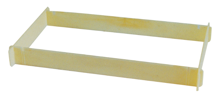 四个长条形塑料片,以相互插接的方式,拼装成一个长方形边框。用边框将立体足迹围住,向足迹浇筑石膏,液体石膏被限制在边框的范围内。石膏固化后形成整齐的长方形足迹模型。易于携带、存放。